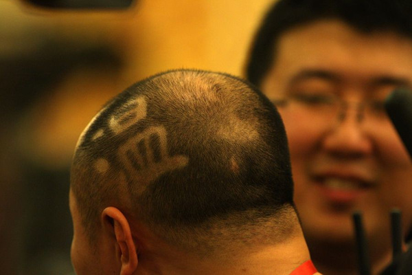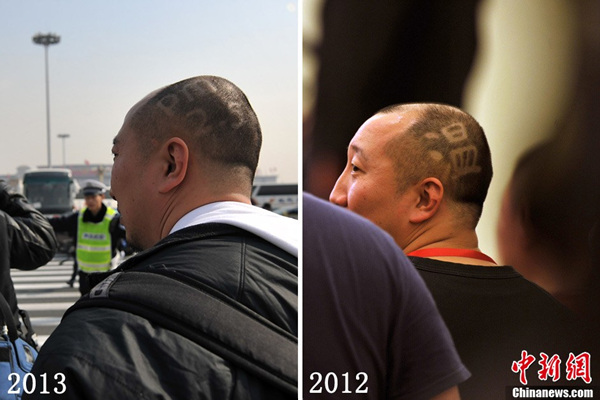 2013年该记者的“PM2.5”发型(左)和2012年的“温字头”(右)