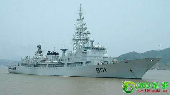 中国海军851号情报收集舰(搜集舰)为原“东调”232号,东调”232号是中国第一艘可搭载直升机的情报搜集船,由沪东造船(集团)有限公司建造,于1999年下半年服役。